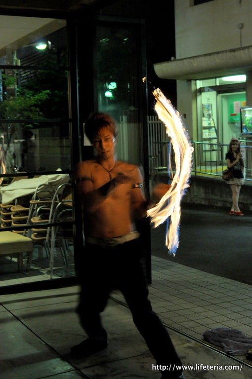 火がついたトーチをグルグル回す回す!