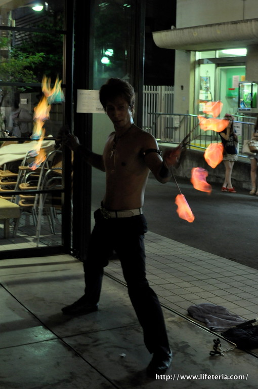 昔チェーンソーを回しながらジャグリングする大道芸人(この動画ではチェーンソー回していませんが)にビックリしたことありますが、こちらも相当ビックリですねー。ってか、なんできみそんなにいい身体してるの?