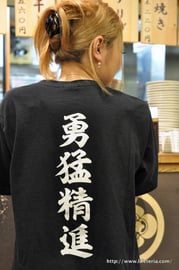 愛想のいい大将、「だって用心棒が喰うんだぜ?これくらいデカくないと」という、もう訳のわからない説明に一同爆笑しつつ塩むすびにかぶりつきます。