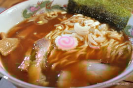 醤油ラーメンはチャーシュー、葱、海苔、なるとなどがトッピングされ、昔懐かしい東京風のルックス。