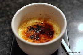 食後いい気分でくつろいでいたらまた別のイケメン店員がデザートメニューを持ってきてくれました。じゃ、その「ブリュレ」ってヤツを。