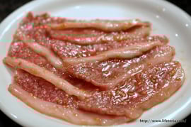 カルビもいちばん安い980円の皿ですが、それでもこの程度の肉は出してくれます。やや脂が強いですが、和牛らしい脂の甘さもあり、この値段だったら満足満足。いやむしろ安いよね。