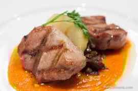 ・ポークロイン パプリカソース コールラビと茄子のオーブン焼き