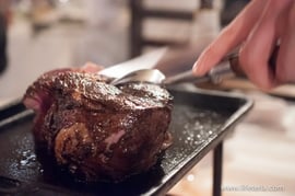 オーストラリア産穀物肥育牛のリブロースがこんがり焼けてテーブルへと運ばれてきました。外側はカリッと香ばしく、中は適度に火が入りロゼ色。この香ばしさは炭火焼ならではですね。