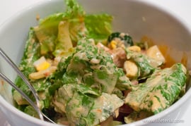 コブサラダは「SO TIRED」のキレイなお姉さんがテーブルでグッチャグッチャかきまぜて作ってくれます。
