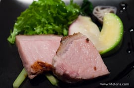 シンプルな調理ですが、豚のウマさを存分に引き出したこの料理、ぼくの好きなテイストです。肉質はきめ細やか、とても繊細な印象。そのまま食べてもいいですし、もちろん添えられたバルサミコ酢のソースをからめても美味。