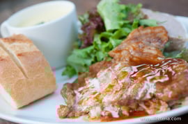 本日のおすすめとなるワンプレートのランチはポークジンジャーがメイン。バゲットよりもご飯で食べたくなるような味でした。
