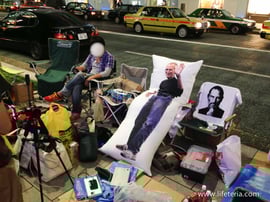 ちなみにソフトバンクの店舗は行列20名ほど、NTTドコモはわずかに2〜3名と、携帯キャリアの店舗はさほどの熱狂は見られず、です。