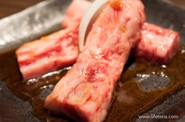 「えんぴつ」は「リブロース」の一部ですが、1頭の牛から1kg程度しか確保できないそうで、こちらも希少部位なんだそうです。赤身の味がしっかりしていまして、ポン酢で食べても悪くなかったですね。