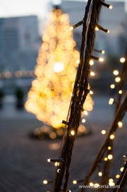 気がつくと外はすっかり暮色を帯びて運河沿いのクリスマスツリーに灯りが灯っていました。