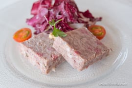 ・富士湧水ポークのテリーヌとクルミ、ゴルゴンゾーラトレビスのサラダ