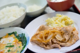 この日の日替り定食は豚肉の生姜焼き、マカロニサラダ、大根おろしという組合せで570円。これに豚汁を追加して650円です。