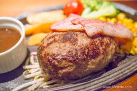人気焼肉店の「ジャンボ」、「焼肉 ホルモン 稲田」、ハンバーガーの「ブラッカウズ」、しゃぶしゃぶ、すき焼きの「今福」などを展開する「ヤザワミート」グループのステーキ・ハンバーグレストランがこの「ミート矢澤」。肉はもちろん黒毛和牛A5ランクを使用。
