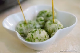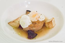 「ポルペッティーネ」とは肉団子。鶉の肉団子に添えられるのはこれまた鶉の半熟玉子とムース状に仕立てたパルミジャーノ・レッジャーノ。