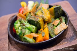 ・緑黄色温野菜のバジルソースかけ(650円)