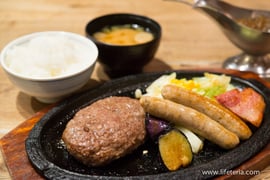 「鉄板ハンバーグMIXグリル」はハンバーグ、ソーセージ、ベーコンのグリルのセット。