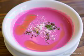 湿気を含んだ重たい空気のなかで、この色あいと冷えたスープの喉越し、やわらかなビーツの風味が食欲をそそります。