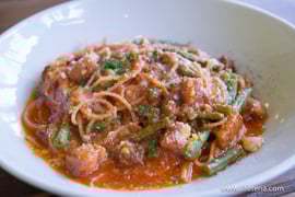 見た目の豪快さに負けず、味わいもしっかりとトマト、豚肉のウマさを感じられる力強いできばえ。