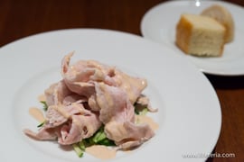 肉と胡瓜の冷菜、イタリアンというよりか棒棒鶏のようですね(笑)。豚の味わいを殺さないようソースはあっさりと。ほのかにツナの味がしますね。