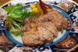 この日は鹿児島の「宝山豚」をシンプルに炭火焼に。そうですね、豚肉はやや火入れが強めでしょうか。もう少しジューシーさを残した火入れのほうがぼくは好みです。