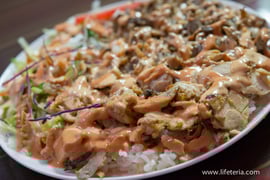 ライスの上には細かくスライスされた牛肉と鶏肉、そしてけっこうなボリュームの野菜。肉はパサついた感じですね。特段ウマいとは思えません。
