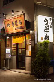 23時になろうかというのに、真夏の夜のように蒸し暑い空気のなか訪問したのは「こんぴら茶屋」。こんな時間でもほぼ満席というのがスゴいですね。そしてほとんどのお客さんが食べているのが「カレーうどん」。