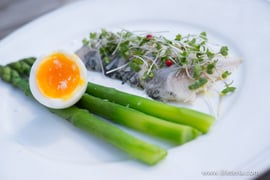 ニシンのマリネには立派なアスパラガスと玉子。アスパラガスはパラリと散らした岩塩でシンプルに頂きます。