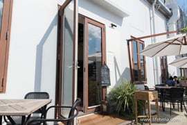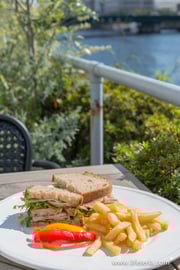 湖ではありませんが、運河に面してテラス席も用意されていますので、明るい陽射しが降り注ぐテラス席でランチを楽しむことにしましょう。