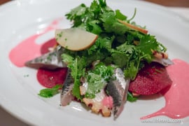 ・鰯とタコのマリネとビーツ、パクチー、りんごのサラダ(1,700円)