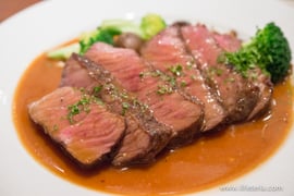 そして、この日いちばん気に入った皿がこちら。「和牛シンタマ肉のステーキ」。シンタマらしくきめ細かくしっとりとした肉質は旨味をたっぷりとたたえ上質。これはウマかったなあ。