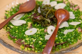 「戻り鰹のたたき」は鰹が見えないくらいの青葱。にんにくも入ってこれだけでパワー漲りそうです。けっこうボリュームもあります。
