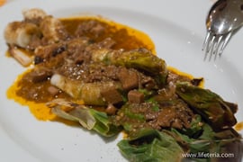 「下仁田ネギのローストとスルメイカのソース」はローストすることで引出された葱の甘味にスルメイカの風味と塩味がなかなかのコンビネーションでした。
