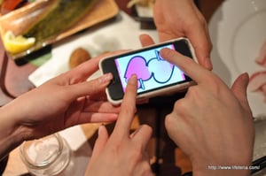 iPhoneのタッチパネルのハートにお互いの指を乗せるだけ。