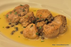 セコンドにはゴールデンポークフィレ肉のケイパーとレモンのソースを。こちらも塩味はかなり強め。