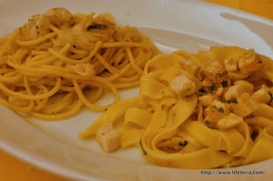パスタは二種。カジキマグロとからすみのフェットゥッチーネ、ラルド(豚の背脂の塩漬け)のスパゲティ。どちらも塩味は濃いめ、そして脂っこいので、好みが別れる仕上がりかも知れません。個人的にはOK。