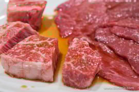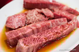 残念だったのはお店のオススメ「特上カルビ」。これが肉厚でウマそうだったんですが、ぼくたちが入店するころにはすでに売切れ。でも代わりにオーダした「上カルビ」でもかなり肉厚で美味でしたよ。ロースも肉質きめ細やかで上質。