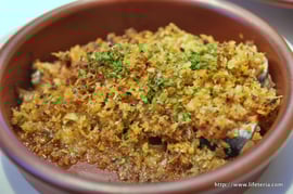 オイルサーディンはカリッと焼けたパン粉が香ばしく食欲をそそる出来ばえ。ワインだけではなく、ビールでグイッといくにも良さそうなテイストです。