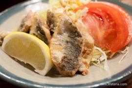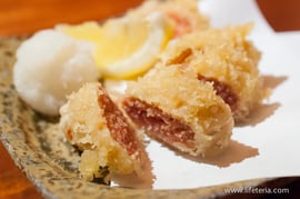 奥に写っているのはソフトシェルクラブ、オニオンリング、芝海老のフライ。
