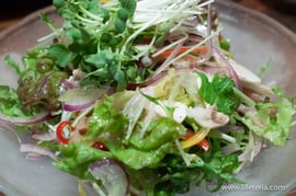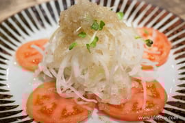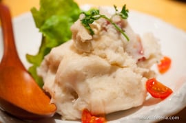 博多で普通「ごまさば」と言う場合は、鯖の刺身を醤油、炒りゴマ、ワサビ、もみ海苔やその他薬味と和えた料理のことをさすことが多いようです。なかなか東京では食べられない料理なので、うれしいですね。