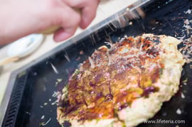 お好み焼きはお店のスタッフさんに製作をお願いしちゃいました。以前に関西人の友人に聞いたんですが、シロウトが作るよりも、お店にまかせたほうが絶対にウマい、と。まあ自分たちで作ると味はともかく、楽しいですけどね。