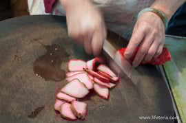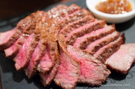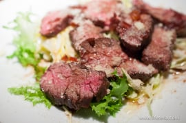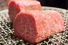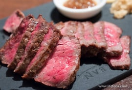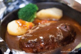 そしてなんとビックリなことにこの大きさで2,300円。お店のスタッフさんに訊くと、もんじゃ焼きを食べてくれるお客さんのためのサービスメニューだそうで、このステーキだけでは儲からないそうで。そりゃそうでしょうねー。