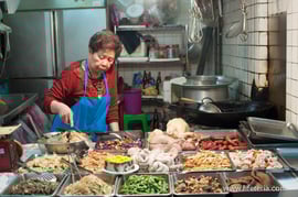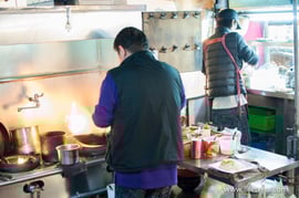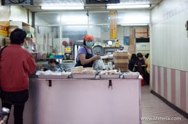 「はい、こちらの券売機で食券を買って頂き、前菜はこちらのカウンター、メインは向こうのカウンターにお出しください」