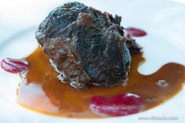 すばらしい大きさのほほ肉。ですが、ボソボソした食感、そしてソースの味が染み込まず、さらにそのソースもコクがなく、と大きさ以外はあまりいいところがない料理でした。ソースに果実を使っているのは少しだけおもしろかったですけど。