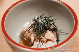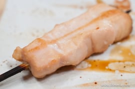 下味はしっかり付いていますので、お店のかた曰く、サッと火を通して、つけダレは使わずに葱だけを添えて食べてみて、と。そういえばむかしは「まずは生で食べてみて」なんて言われましたが、さすがに最近は言えないですよね。