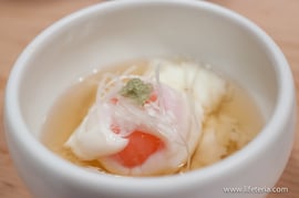 前菜は自家製ハム、帆立のテリーヌ、小肌のマリネ。いずれも少量ですが、味はまずまず。というか、1,050円ということを考えれば上等です。ビネガーで〆めた小肌はスッキリとした風味、やや強めの〆め具合がとても好み。