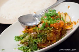 辛さが足りない場合は、テーブルにあるマサラを投入してみるのもオススメ。このマサラを使うと、単に辛さが増すだけではなく、よりふくよかな味わいになるのが非常に不思議。