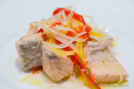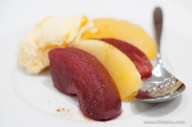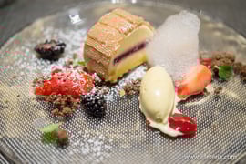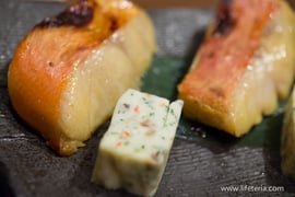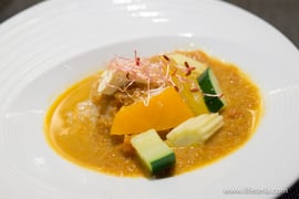 個人的にはあまりクロスオーバした食材や調理の組合せって好みではなくて(そのような料理の中にはシェフのひらめきを感じるすばらしいものもたまにありますが)、オーソドックスな料理で完成度が高いほうが好きなので、割とコンサバではありますが、「鮭のエスカベッシュ」、「豚肉と根菜のバルサミコ煮」、「洋風いかめし」、「カボチャティラミス」、「2色のリンゴコンポート」、このあたりがなかなかの佳品と思いました。