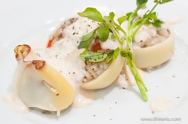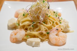「名物‼︎しらすたっぷりペペロンチーノ」は、テーブルのうえでしらすを好きなだけかけてくれるというパフォーマンス付き。なかなかおもしろい趣向ですね。ぼくはスタッフのオススメの分量で。