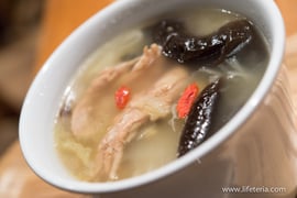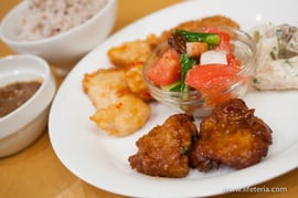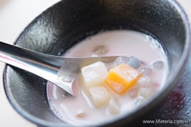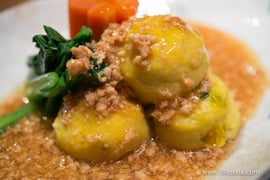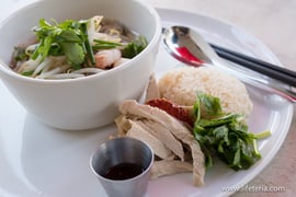 「カオゲーンペッガイ」は「鶏肉のレッドカレー」。こちらはかなり強めにココナツミルクの甘さを感じますが、辛さ自体もありけっこうホット。チキンはじめ、器のなかには具材がギッシリ。これはうれしいですね。