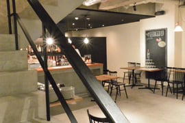 いつも賑わっている「恵比寿横丁」の裏口を出て、隣のビルの外階段を2階に上がりドアを開けるとそこが「ロジェカフェ」。
